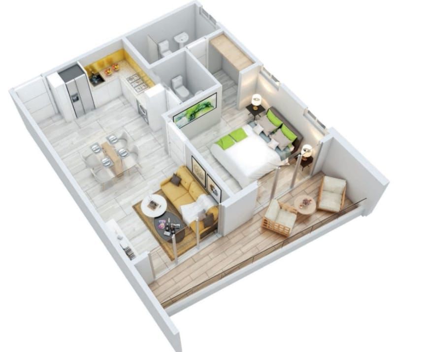 Este apartamento de 1 Habitación está listo para vivir o rentar.