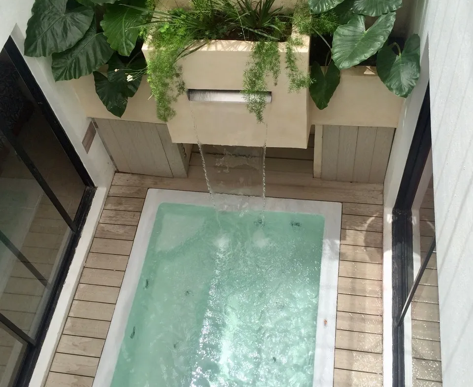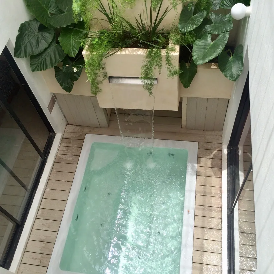 160.40 m2 – casa de dos pisos, dos dormitorios, jacuzzi con cascada en jardin